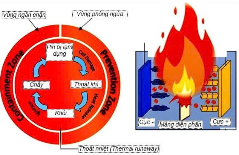 Minh họa nguy cơ cháy, nổ phát sinh từ một tế bào pin (cell pin) do thoát nhiệt.
