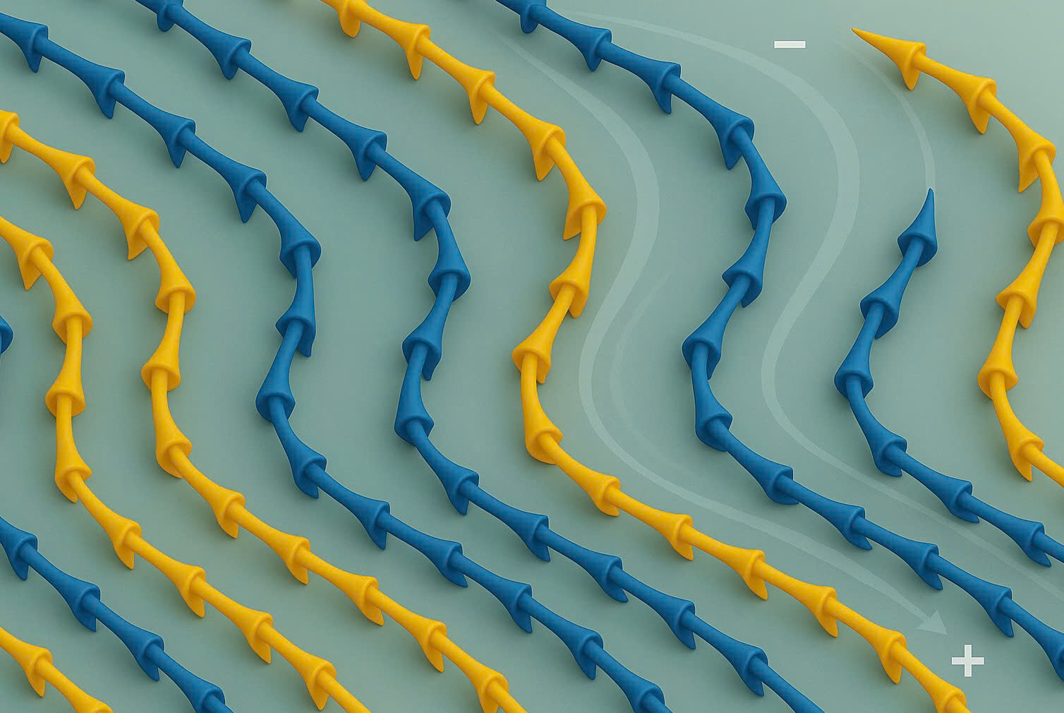 Ở nhiệt độ thấp, các spin nguyên tử trong tinh thể này tự sắp xếp thành những cấu trúc phức tạp như hình xoắn ốc hoặc nón, với kích thước lớn hơn nhiều so với mạng tinh thể cơ bản. Điều đặc biệt là chúng không bị gắn cứng vào cấu trúc nguyên tử, điều này giúp dễ dàng điều chỉnh bằng điện trường. Nhóm nghiên cứu lần đầu tiên chứng minh được rằng, có thể dùng điện áp để thay đổi hướng lan truyền của các cấu trúc từ tính này - được gọi là hiệu ứng lệch hướng từ điện.