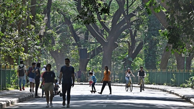 Người dân đi dạo trong công viên Cubbon, Bengaluru. Ảnh: DH Photo