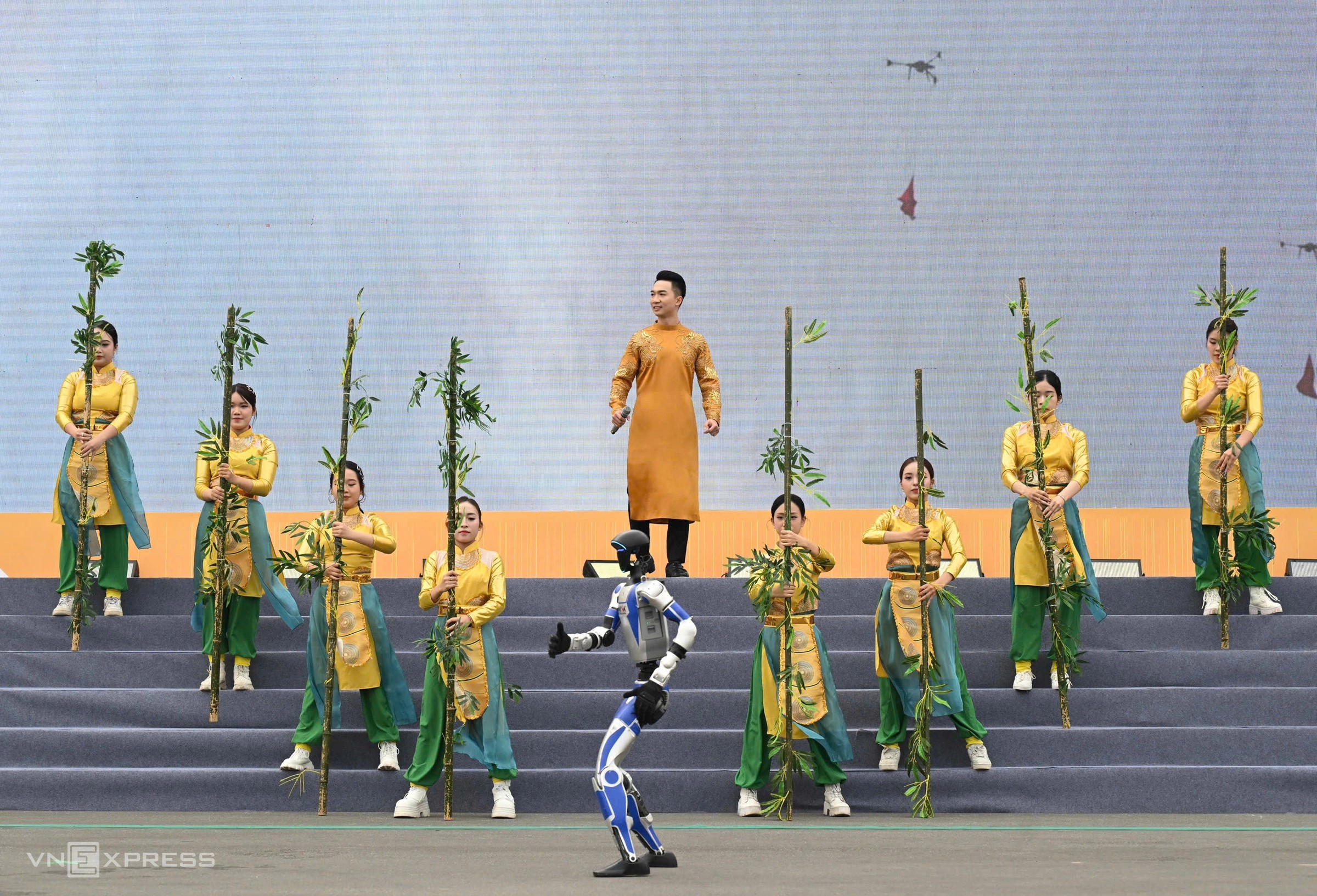 Giữa không gian trình diễn ngoài trời, bức tranh của hệ sinh thái Make in Viet Nam được thể hiện với hàng loạt robot, UAV, xe tự hành, do doanh nghiệp Việt phát triển được vận hành đồng thời, phối hợp nhịp nhàng trong một kịch bản chung, thể hiện các ứng dụng thực tế của sản phẩm.