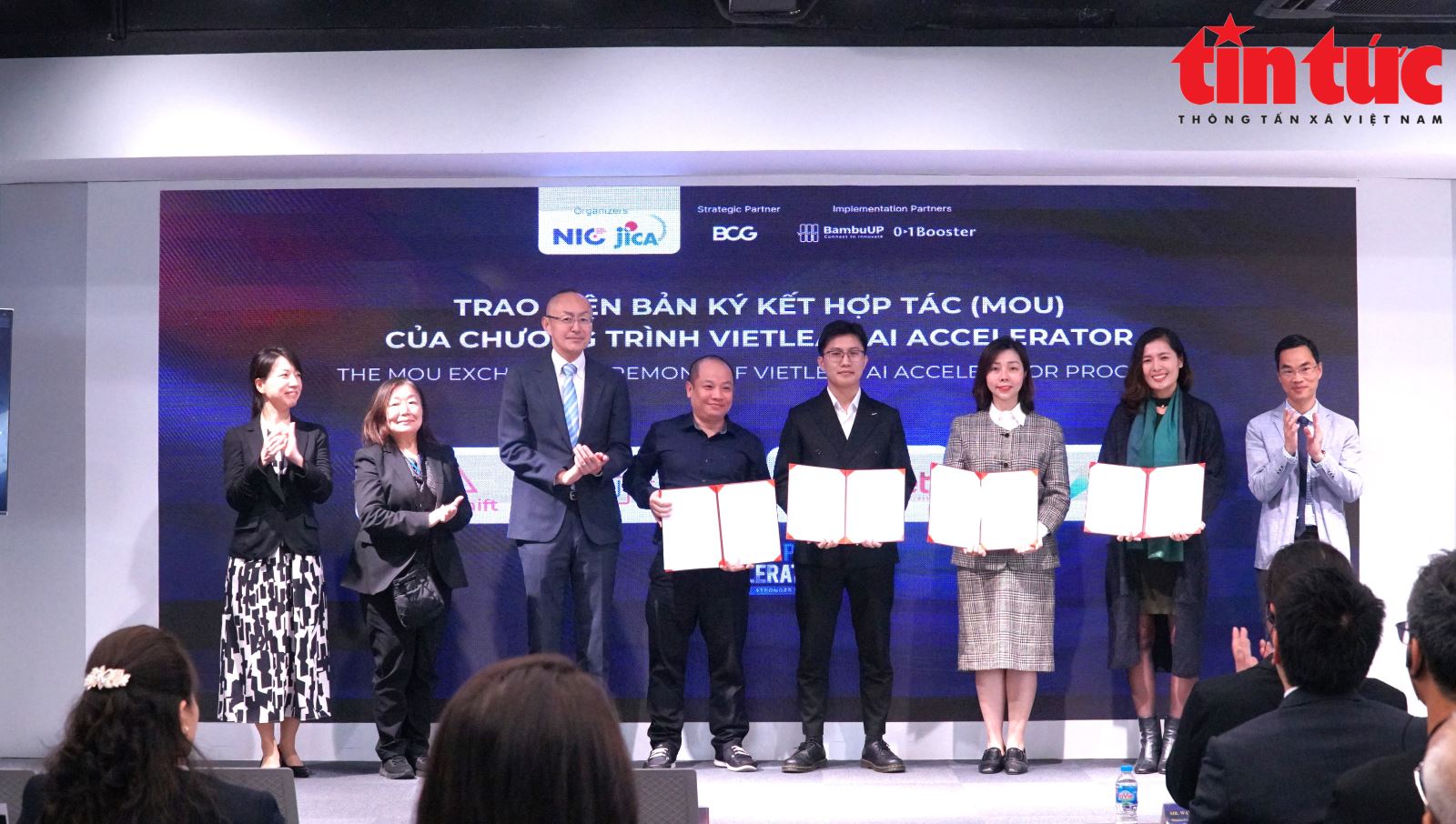Các startup Việt Nam và đối tác Nhật Bản trao biên bản ghi nhớ hợp tác tại chương trình.