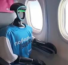 Robot hình người trên chuyến bay của hãng hàng không Pobeda (Nga).