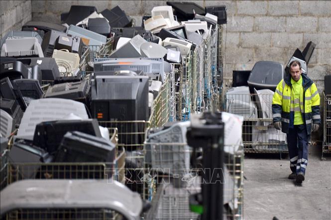 (Ảnh minh họa) Công nhân làm việc tại trung tâm thu thập rác điện tử ở Ploufragan, miền tây Pháp. Ảnh: AFP/TTXVN