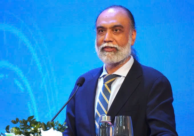 Ông Amandeep Singh Gill phát biểu tại hội thảo quốc tế "Đối thoại về Quản trị trí tuệ nhân tạo" tổ chức tại Hà Nội chiều 5/1. Ảnh: Nhật Minh